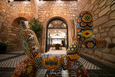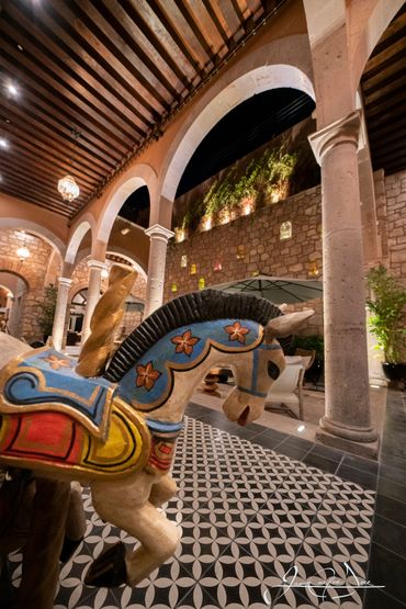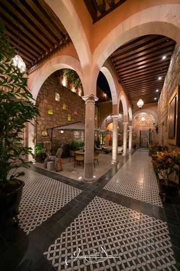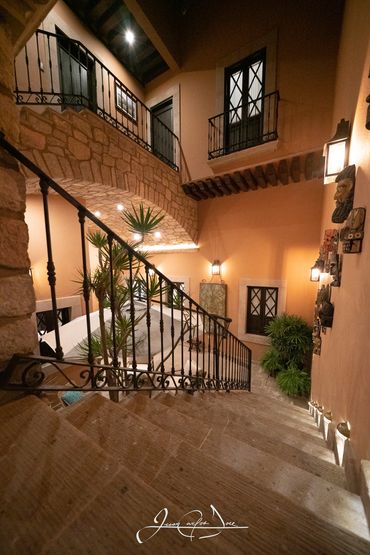 All the beams were changed, and in the back space, the house had a more modern construction and also in terrible condition, so it collapsed and a second courtyard was built with access to the upper floor.